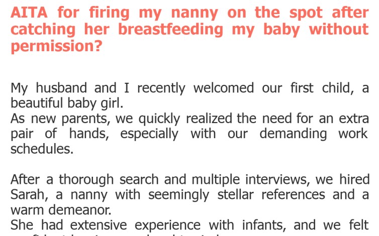 "AITA for firing my nanny on the spot after catching her breastfeeding my baby without permission?"