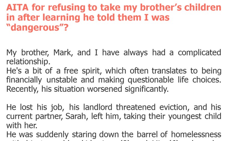 AITA for refusing to take my brother’s children in after learning he told them I was “dangerous”?