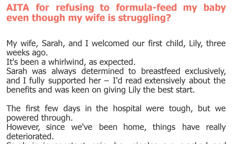 "AITA for refusing to formula-feed my baby even though my wife is struggling?"