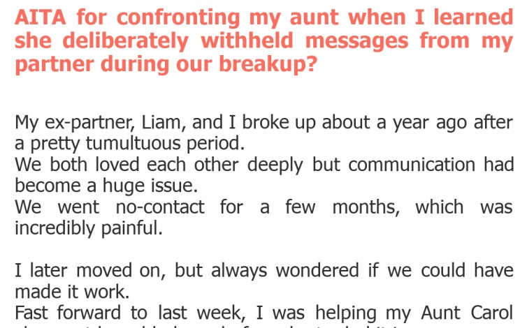 AITA for confronting my aunt when I learned she deliberately withheld messages from my partner during our breakup?