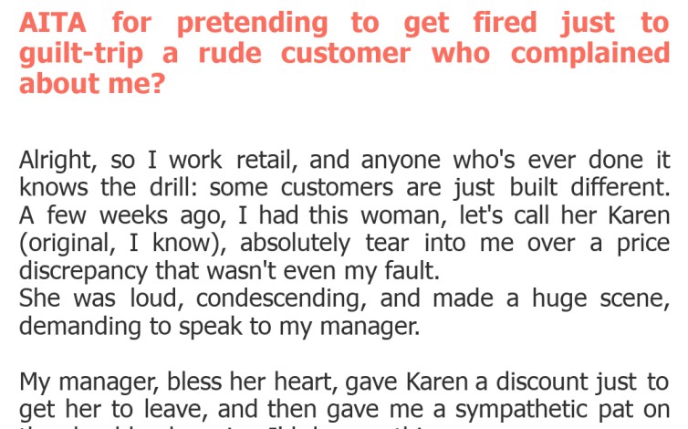 "AITA for pretending to get fired just to guilt-trip a rude customer who complained about me?"