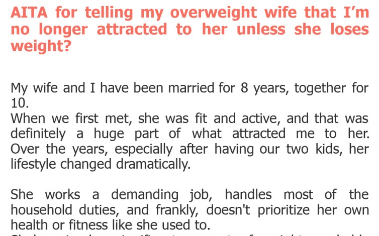 AITA for telling my overweight wife that I’m no longer attracted to her unless she loses weight?