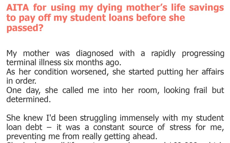 "AITA for using my dying mother’s life savings to pay off my student loans before she passed?"