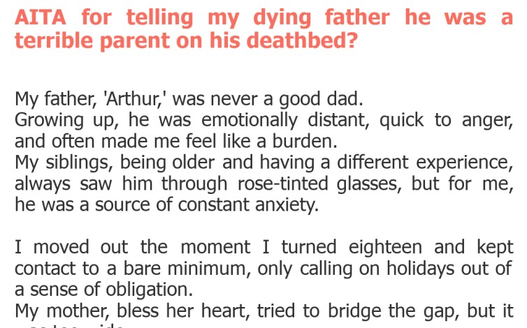 "AITA for telling my dying father he was a terrible parent on his deathbed?"