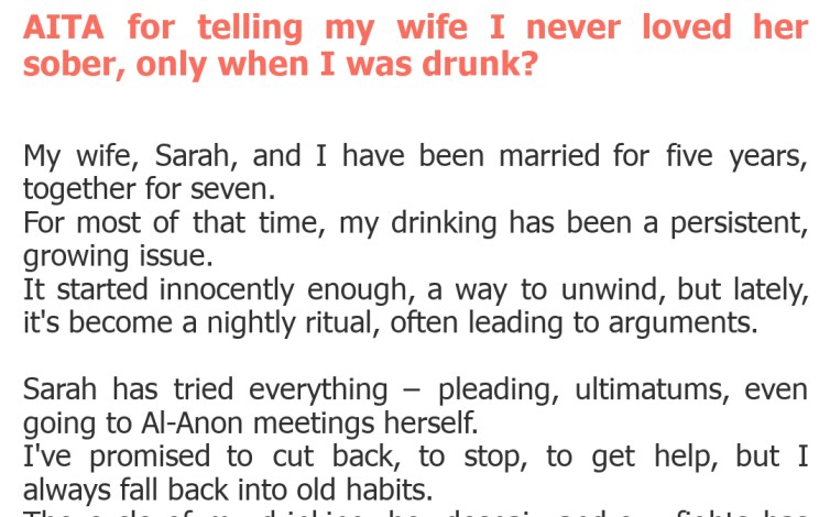 "AITA for telling my wife I never loved her sober, only when I was drunk?"