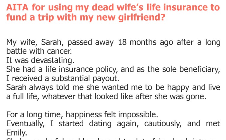 "AITA for using my dead wife’s life insurance to fund a trip with my new girlfriend?"