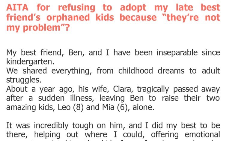 AITA for refusing to adopt my late best friend’s orphaned kids because “they’re not my problem”?
