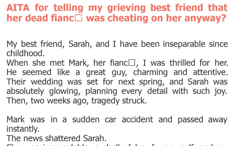 "AITA for telling my grieving best friend that her dead fianc was cheating on her anyway?"