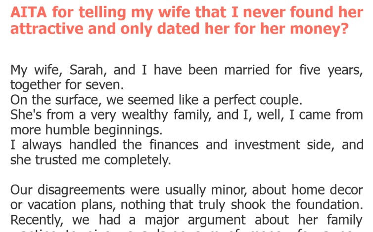 "AITA for telling my wife that I never found her attractive and only dated her for her money?"