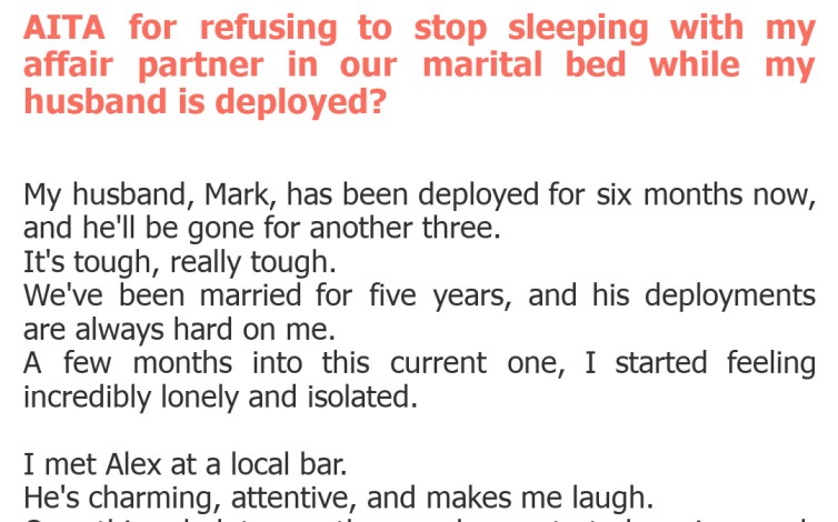 "AITA for refusing to stop sleeping with my affair partner in our marital bed while my husband is deployed?"