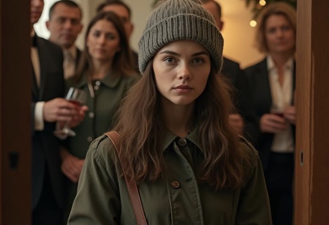 I stood at the bottom of my parents’ front steps, shivering inside a second-hand coat I had chosen very carefully. The buttons didn’t match—one brown, one black—and the bottom edge was worn and frayed just enough to suggest a life that never quite came together. The coat smelled faintly of someone else’s cigarettes and cheap detergent, the kind of smell that clings to fabric no matter how much you wash it.