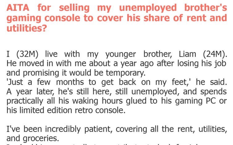 AITA for selling my unemployed brother’s gaming console to cover his share of rent and utilities?