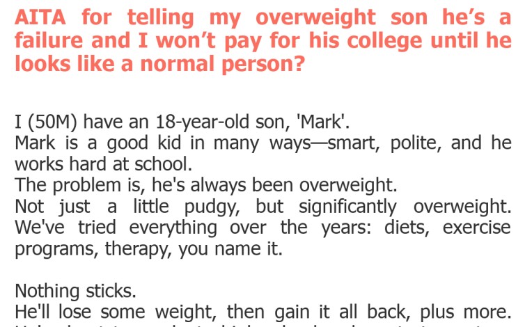 AITA for telling my overweight son he’s a failure and I won’t pay for his college until he looks like a normal person?