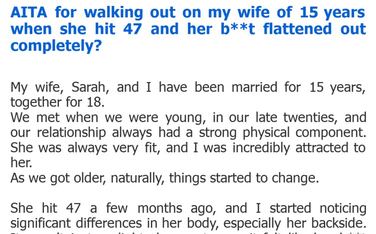 "AITA for walking out on my wife of 15 years when she hit 47 and her b**t flattened out completely?"