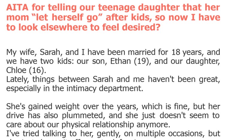 "AITA for telling our teenage daughter that her mom “let herself go” after kids, so now I have to look elsewhere to feel desired?"