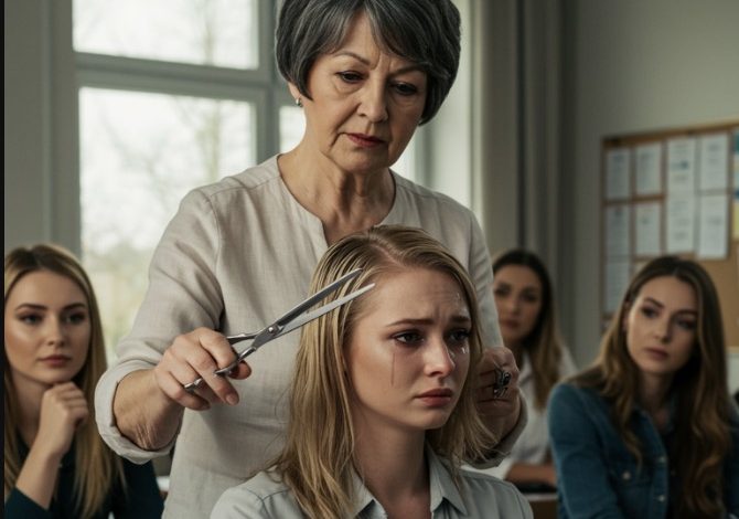 “Sit still,” Miss Turner commanded, the silver scissors glinting predominantly under the harsh fluorescent lights. She held them like a weapon, not a tool. “You’re disrupting my class with your constant scratching. You’re distracting the students who actually want to learn. Consider this a lesson in discipline.”