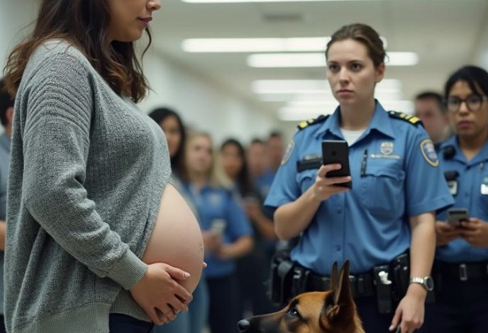 I stepped through the scanner, hands raised, feeling the baby shift again. Ten feet away, a TSA handler was standing with a German Shepherd. The dog, a magnificent creature with intelligent eyes, was sweeping the line of passengers. He looked bored, efficient.