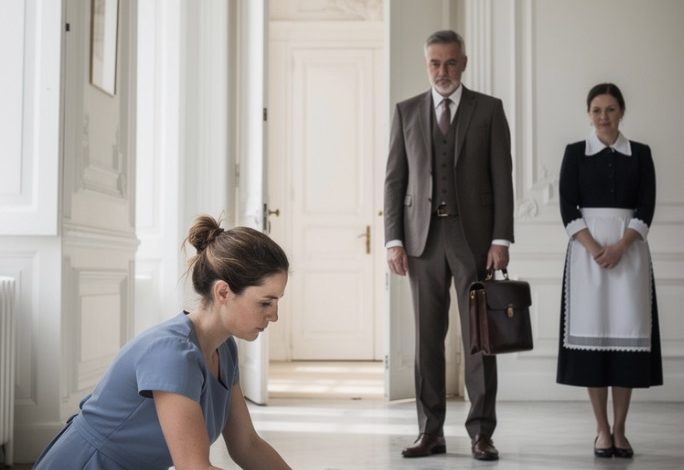 What greeted me was a smell that did not belong in a home preparing for a newborn: bleach so sharp it burned my eyes, ammonia that sat heavy in the lungs, layered with something sour and human beneath it, and as I followed the sound that echoed faintly through the marble halls, a scraping rhythm punctuated by strained breathing, my steps slowed not from caution but disbelief.