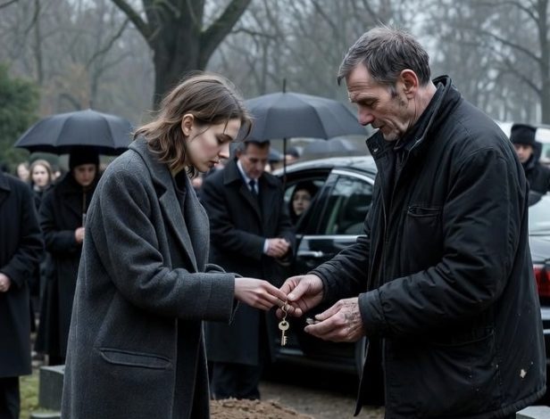 At my father’s graveside service, while my husband moved through the crowd thanking people in that calm, trustworthy voice everyone believed, the gravedigger quietly stopped me, made sure no one was listening, and told me the coffin being buried beneath all those flowers was empty—then handed me a brass key and said I needed to get to room 20 before my husband started asking questions. I thought the shock of the funeral was making the whole thing feel distorted, right up until I unlocked that storage unit and found not dust-covered furniture or family junk, but a lamp still plugged in, neatly tabbed file boxes, a letter with my name on it, and a stack of documents topped by a photo of the man who had already started texting me one simple question: “Where are you?”