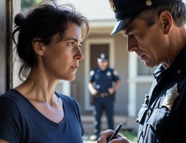 Static crackled on the radio at the older officer’s shoulder. A woman’s voice—screeching—Ethan’s mother, I guessed.