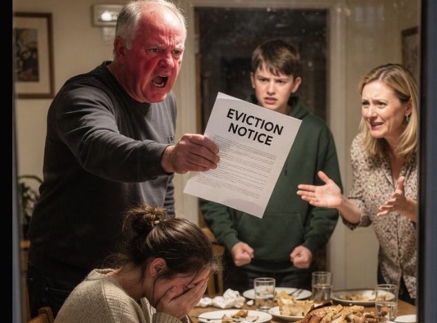 Even after years of tension, I invited my family for Thanksgiving. Mid-dinner, my dad slid me a fake eviction notice—“Seven days,” my mom smiled. I stayed calm… until my best friend handed him an envelope that wiped the color from his face when he read it.
