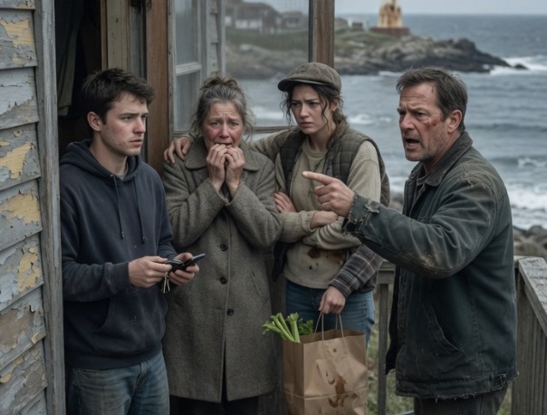 My father, Robert Hayes, stood frozen in the doorway of the seaside house I had bought for my parents’ fortieth anniversary, one hand still resting on the brass doorknob as if the metal itself might explain what was happening. In his other hand he held a small paper grocery bag with a loaf of sourdough sticking out the top and a bunch of green onions bent at the stems. Behind him, beyond the low stone wall and the sloping strip of pale grass, the Monterey shoreline was being itself—gray water, white spray, waves smashing against the rocks with the indifference only the ocean can manage.